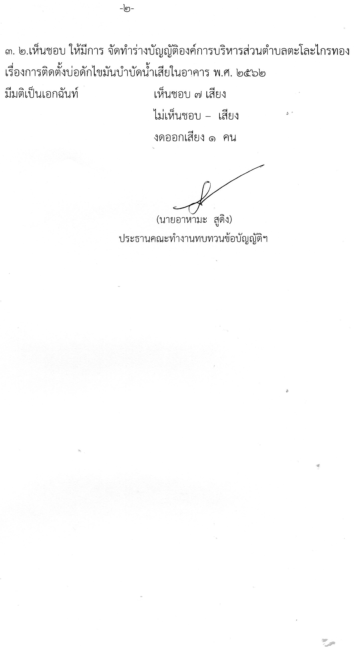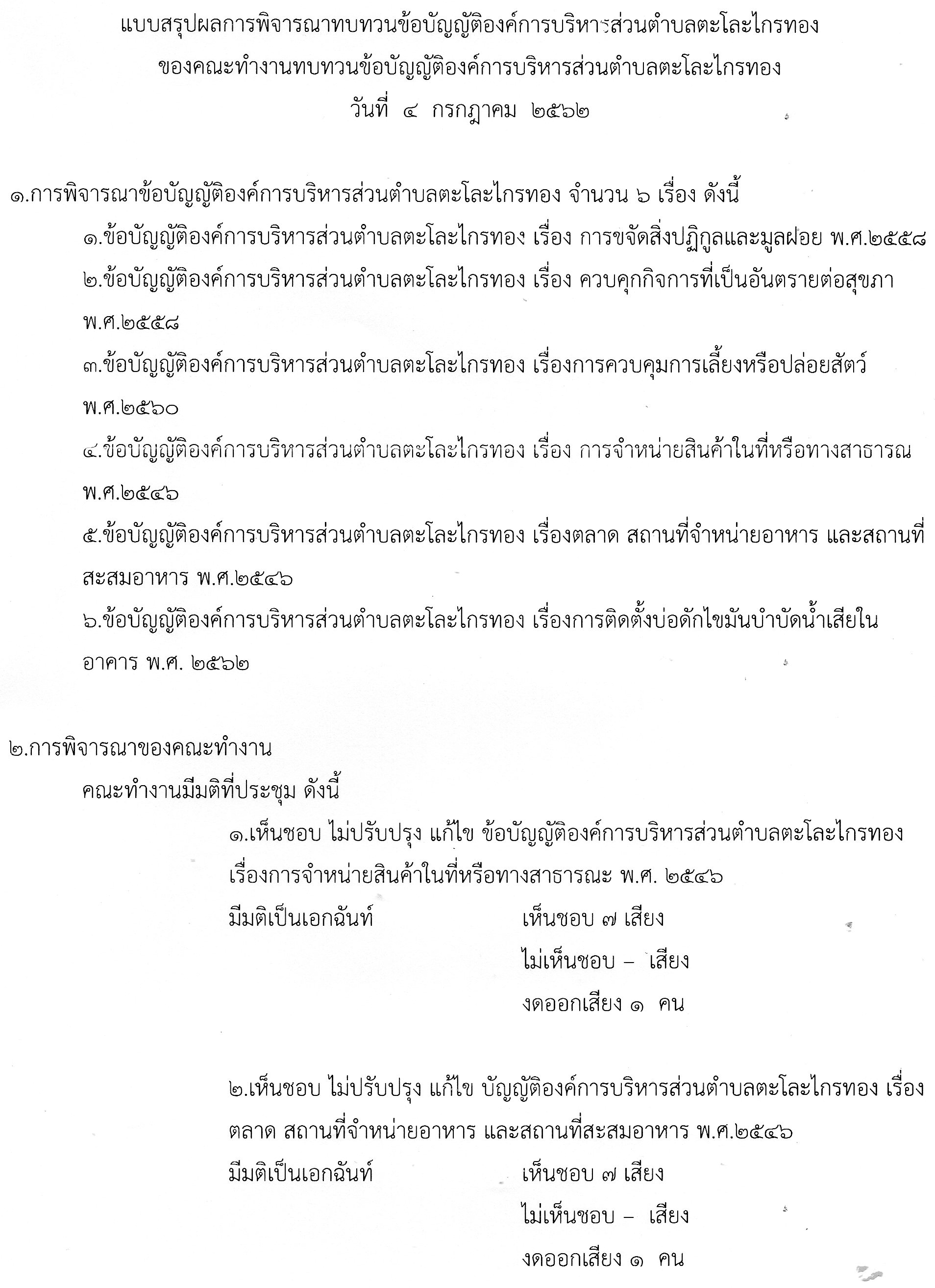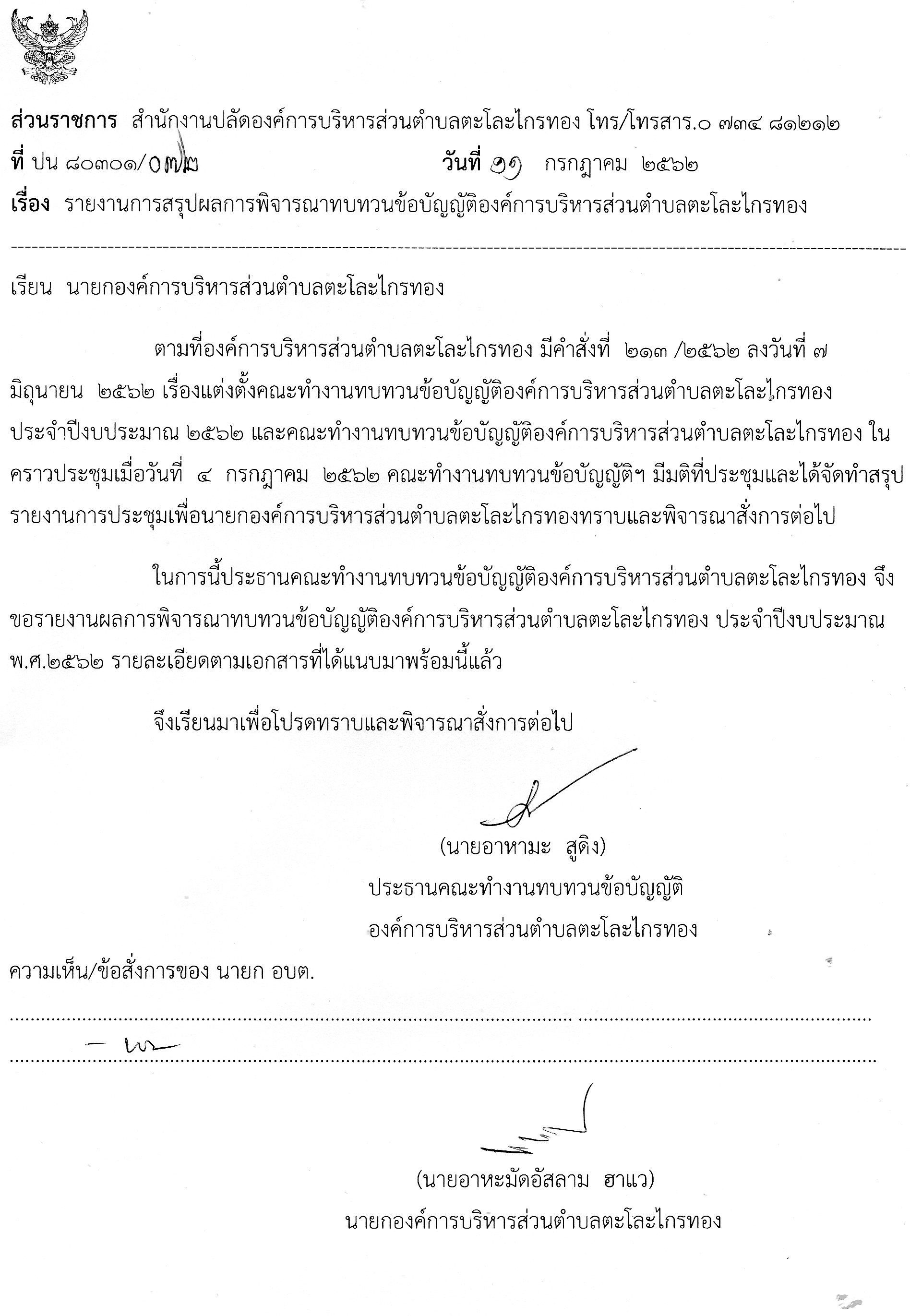 รายงานการสรุปผลการพิจารณาทบทวนข้อบัญญัติองค์การบริหารส่วนตำบลตะโละไกรทอง