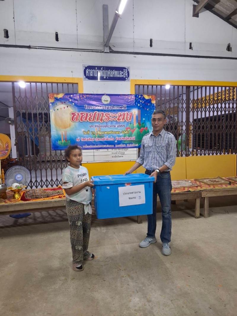 รายละเอียด : วันที่ 15 พฤศจิกายน 2567 องค์การบริหารส่วนตำบลตะโละไกรทอง อำเภอไม้แก่น จังหวัดปัตตานี และประชาชนในพื้นที่ ร่วมสืบสานประเพณีลอยกระทง ประจำปี 2567 เพื่อเป็นการส่งเสริมประเพณีของท้องถิ่น ส่งเสริมการแสดงทางวัฒนธรรม ของประชาชนในพื้นที่ และร่วมอนุรักษ์ธรรมชาติและสิ่งแวดล้อม ด้วยการใช้กระทงจากวัสดุธรรมชาติ เพื่อสำนึกถึงพระคุณของพระแม่คงคา ภายในกิจกรรมจะมีการประกวดกระทง 2 ประเภท คือ ประเภทสวยงาม และประเภทความคิดสร้างสรรค์ ณ วัดโชติรส หมู่ที่ 1 ตำบลตะโละไกรทอง วัดไม้แก่น หมู่ที่ 1 ตำบลไม้แก่น และวัดมหันตคาม หมู่ที่ 3 ตำบลไม้แก่น